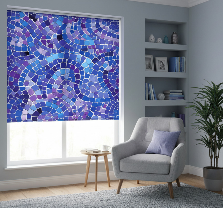 Tenda a rullo blu effetto mosaico