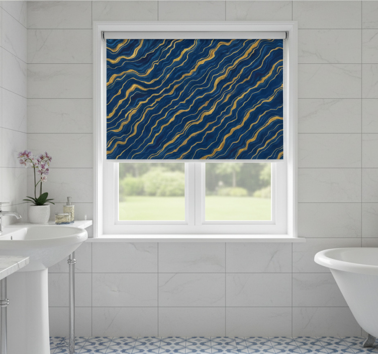 Tenda a rullo blu marmo blu e oro