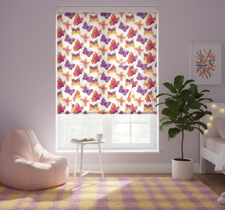 Tenda a rullo camera ragazzi motivo farfalle rosa e giallo