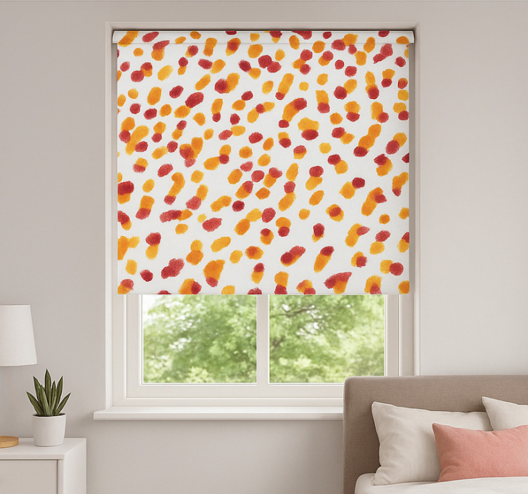 Tenda a rullo camera ragazzi punti arancioni e rossi