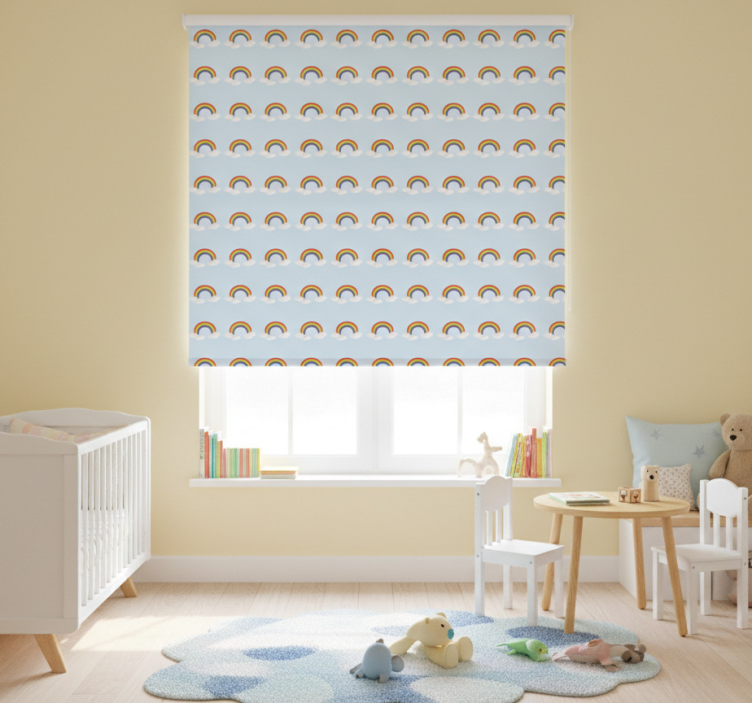 Tenda a rullo cameretta arcobaleno e nuvole colorate