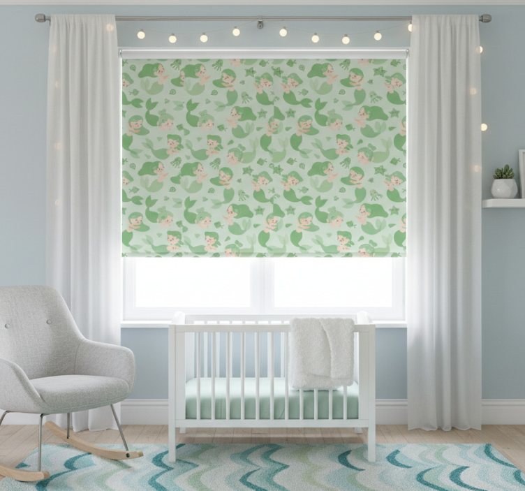 Tenda a rullo cameretta bambina sirena verde sorridente