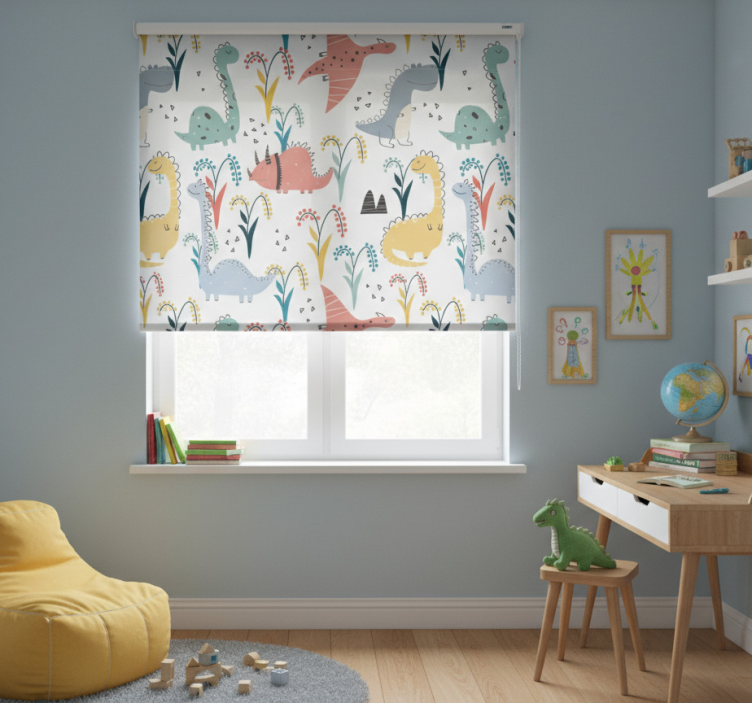 Applicare la tenda a rullo cameretta tenda a rullo cameretta dinosauri e alberi è semplice e veloce! Basta seguire le istruzioni di montaggio e in pochi passi avrete una meravigliosa decorazione che migliora l'aspetto della cameretta. Non dimenticate di calcolare 5 cm in più su ciascun lato della finestra per una copertura totale!