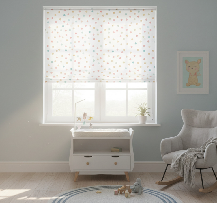 La tenda a rullo cameretta tenda a rullo cameretta con motivo pois glitterati è l'ideale per rendere ogni spazio unico e accogliente! La sua presenza porta un tocco di allegria e fantasia, rendendo l'ambiente più vivace e stimolante. Non solo aggiunge stile ma aiuta anche a creare un'atmosfera serena e rilassante per i più piccoli, trasformando la cameretta in un vero e proprio regno di sogni e creatività!