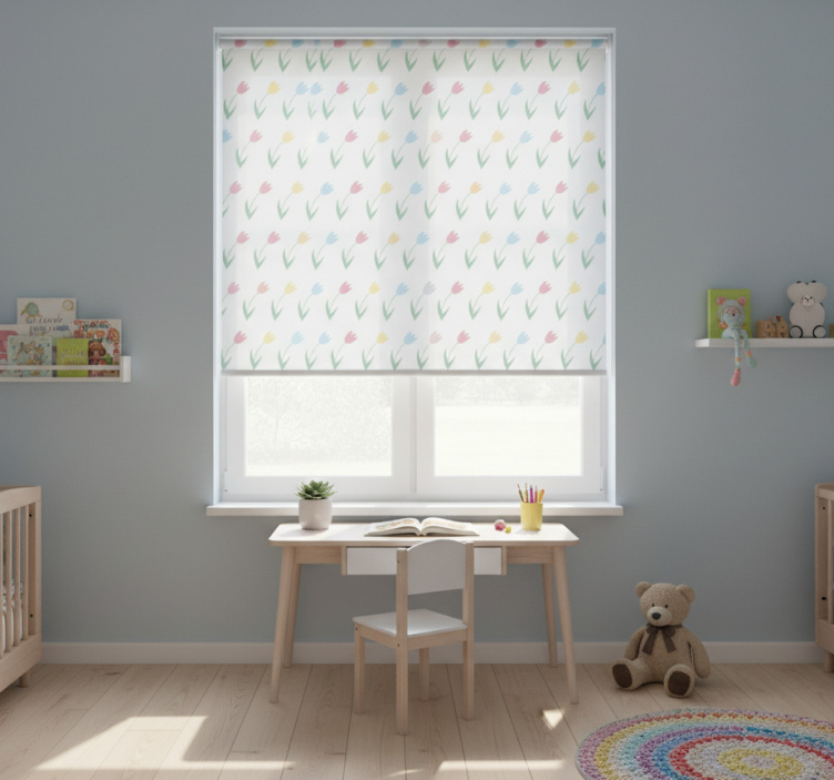 Tenda a rullo cameretta motivo fiori tulipano colorati