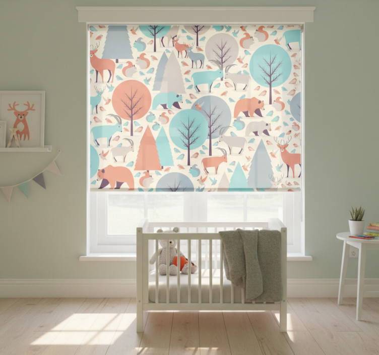 Riferimento: E6799Scoprite la nostra tenda a rullo cameretta scena foresta nordica, un prodotto unico che trasforma ogni cameretta in un angolo magico! Il suo design presenta elementi naturali come alberi stilizzati, animali della foresta e tonalità delicate che richiamano la serenità della natura. Grazie a un facile montaggio in 2 clic, una pulizia semplice e un facile smontaggio che permette di mantenere la finestra sempre splendente, questa tenda è perfetta per chi cerca stile e praticità.