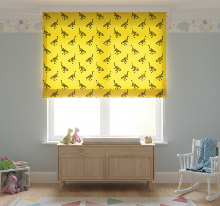 Tenda a rullo cameretta simboli di brachiosauro gialli