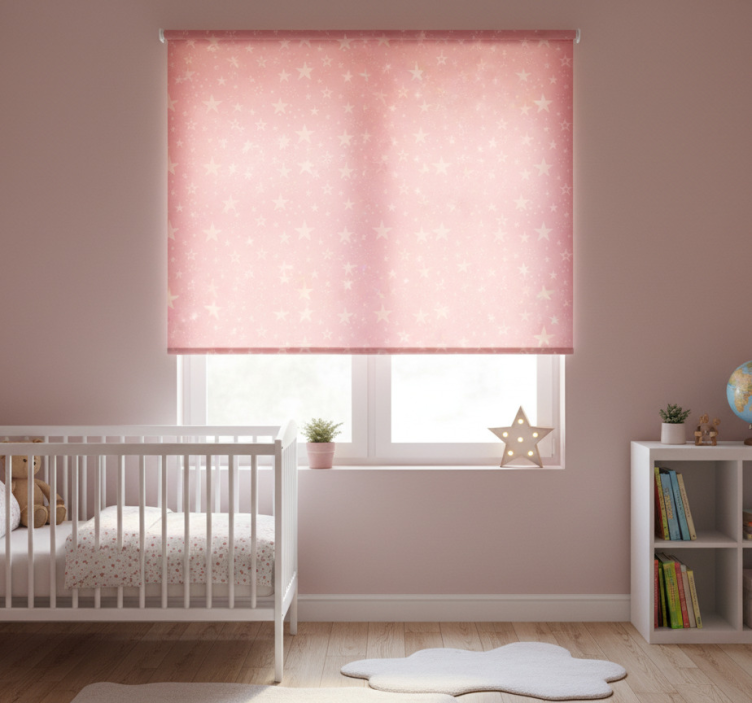 Tenda a rullo cameretta stelle rosa su fondo rosa scuro