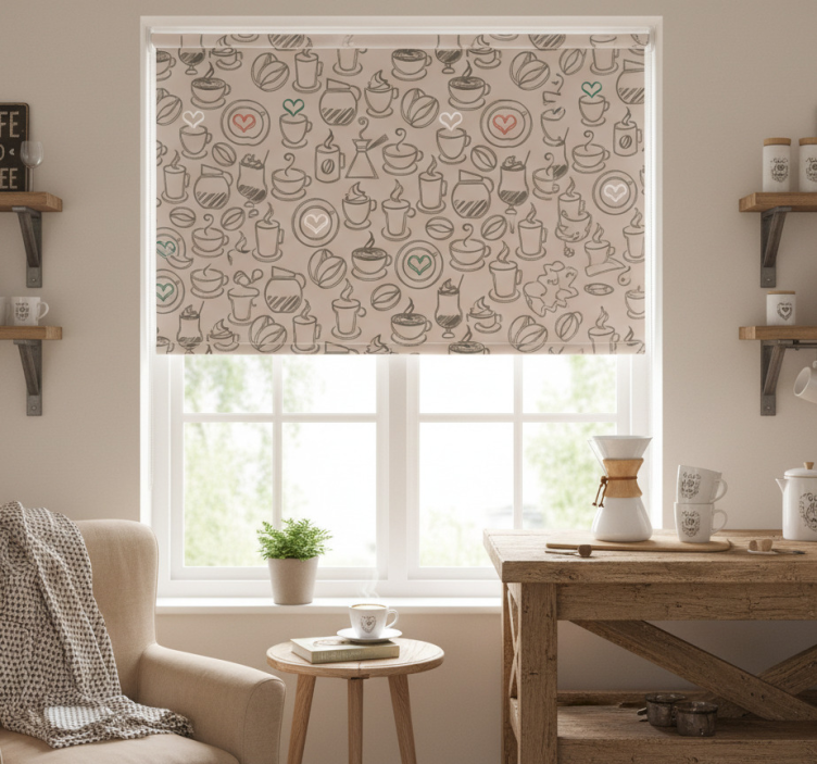 La tenda a rullo cucina tenda a rullo cucina amo il caffè è perfetta per chi desidera dare un tocco di freschezza e personalità alla propria cucina. La sua grafica accattivante non solo abbellisce l'ambiente, ma crea anche un'atmosfera accogliente e stimolante, ideale per le conversazioni conviviali. Grazie alla possibilità di scegliere tra diverse texture, ogni cliente può trovare la soluzione perfetta per le proprie esigenze di luce e privacy, rendendo ogni pasto un'esperienza unica!