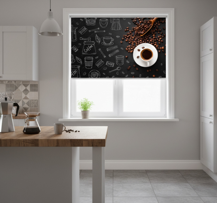 Tenda a rullo cucina chicchi di caffè e scarabocchi