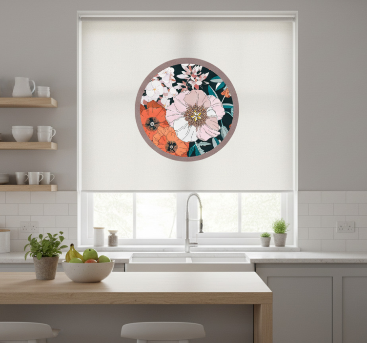 Tenda a rullo cucina fiori di cucciolo in cerchio