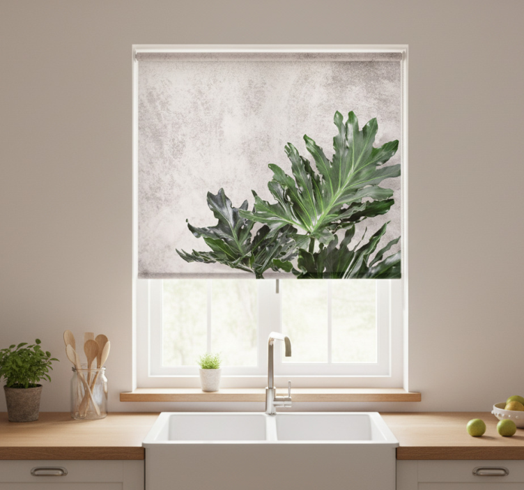Tenda a rullo cucina foglie verdi su sfondo cemento