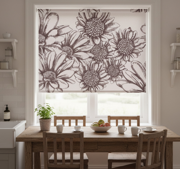 Riferimento: E8367La tenda a rullo cucina girasoli antichi è un vero e proprio capolavoro di design che trasforma l'atmosfera della tua cucina! Con il suo motivo di girasoli antichi, che evoca un senso di storia e calore, questa tenda è caratterizzata da un facile montaggio in 2 clic, una pulizia semplice e veloce, e la capacità di proteggere la stanza dalla luce solare diretta, fornendo privacy quando abbassata e regolando la temperatura ambiente.