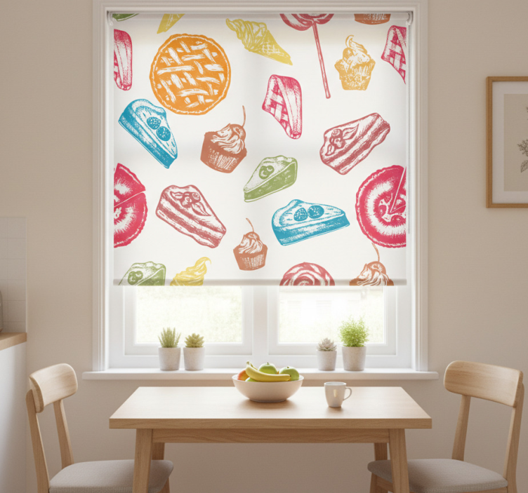 Utilizzare la tenda a rullo cucina tenda a rullo cucina motivo dolci delizie per decorare il vostro spazio significa portare freschezza e originalità nella vostra casa! Questo prodotto non solo arricchisce l'ambiente con il suo design accattivante, ma offre anche praticità e comfort. La possibilità di regolare la luce e la privacy rende questa tenda un elemento indispensabile per ogni cucina!