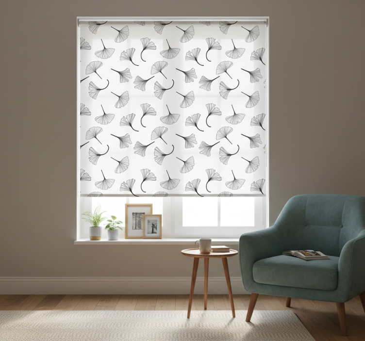 Tenda a rullo cucina motivo foglie di ginkgo nere