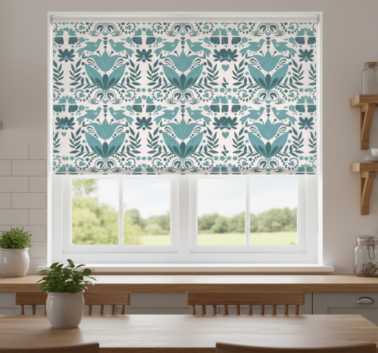 Riferimento: E6410La tenda a rullo cucina motivo folk blu con uccelli porta un tocco di freschezza e vivacità nella tua cucina! Il suo design affascinante presenta un motivo folk caratterizzato da eleganti uccelli su uno sfondo blu, creando un'atmosfera accogliente e rilassante. La combinazione di colori vivaci e dettagli curati rende questa tenda un elemento decorativo unico, perfetto per valorizzare i tuoi spazi.