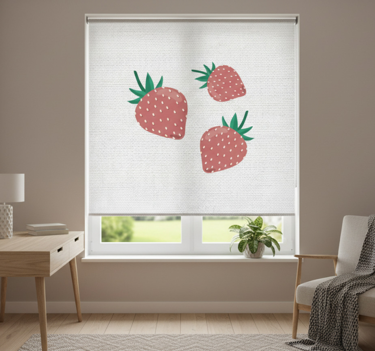 Tenda a rullo cucina motivo fragole colorate scritte a mano