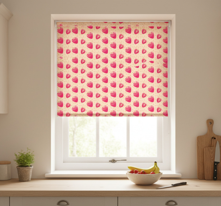 Tenda a rullo cucina motivo fragole su beige