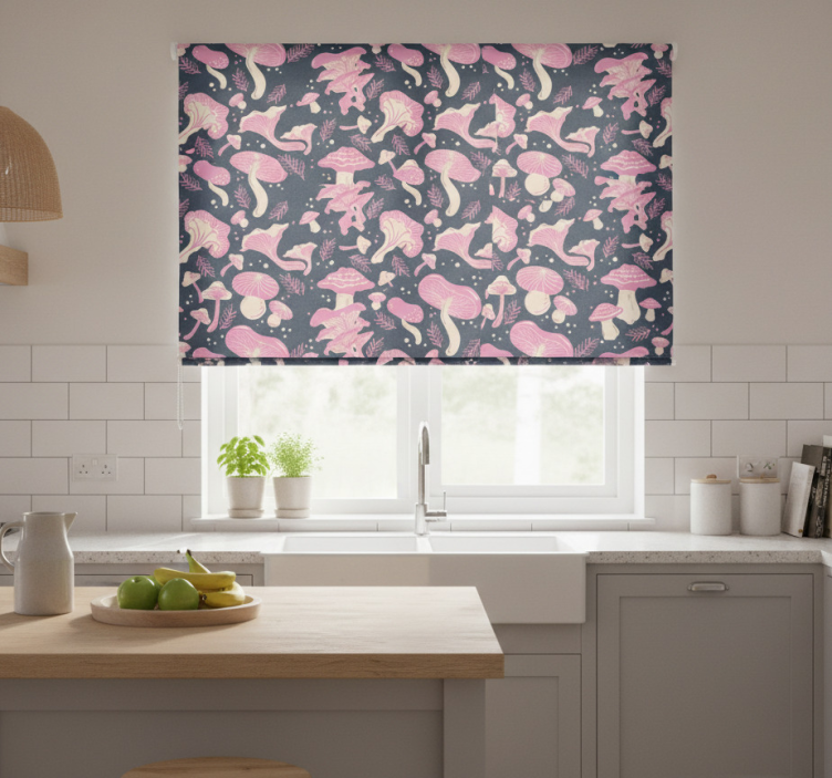 Tenda a rullo cucina motivo funghi rosa seamless