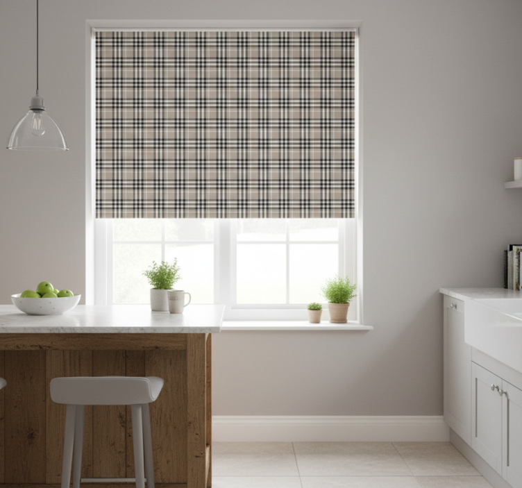 Tenda a rullo cucina motivo tartan scozzese grigio