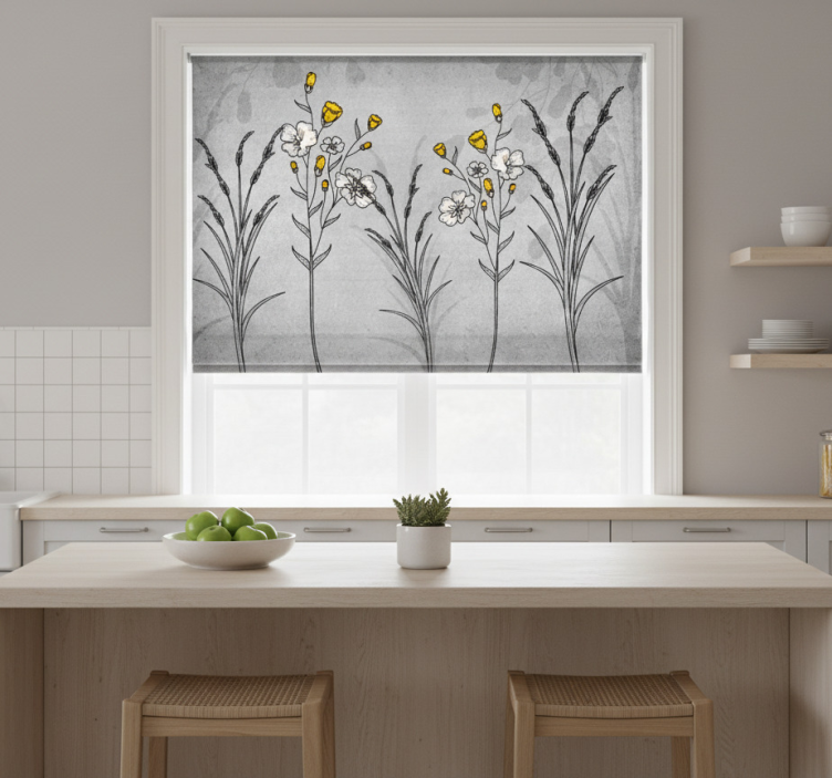 Tenda a rullo cucina piante grigie stile scandinavo