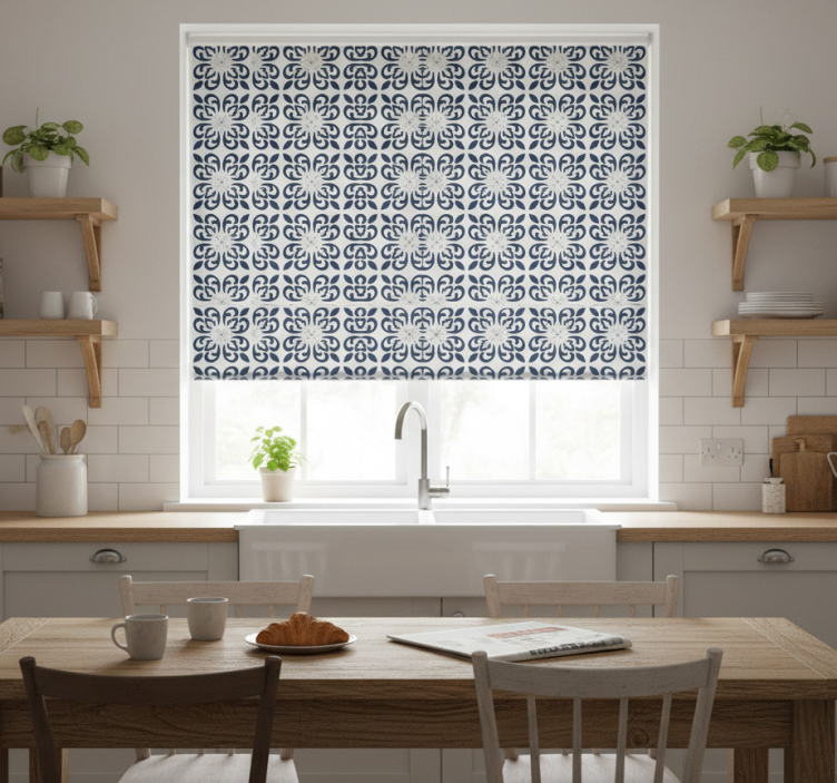 Tenda a rullo cucina piastrella portoghese blu scuro