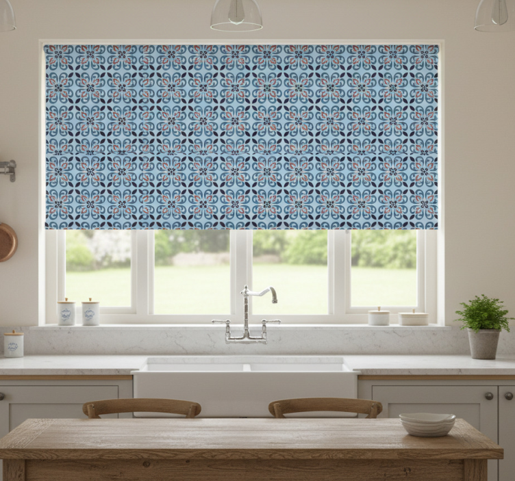Tenda a rullo cucina piastrella portoghese tonda azzurra