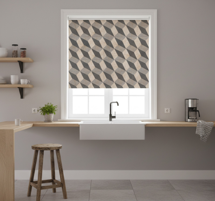 Riferimento: E6371La tenda a rullo cucina piastrelle moderne grigio scuro è un elemento di design unico e raffinato, capace di trasformare l'aspetto della tua cucina con il suo stile elegante. Questo prodotto è caratterizzato da un facile montaggio in 2 clic, una pulizia semplice, e un design che migliora l'arredamento della stanza. La sua capacità di proteggere la stanza dalla luce solare diretta e fornire privacy quando abbassata la rende una scelta perfetta per chi desidera funzionalità e estetica in un solo prodotto!
