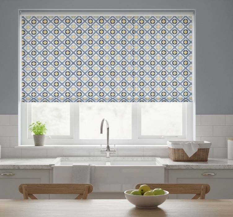 Tenda a rullo cucina piastrelle portoghesi blu e gialle
