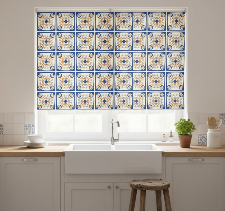 Tenda a rullo cucina piastrelle portoghesi fiorite rosa