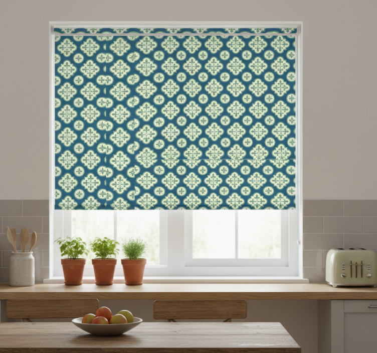 Tenda a rullo cucina piastrelle portoghesi trifoglio verde