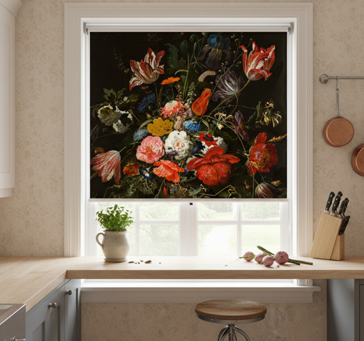 Tenda a rullo cucina pittura fiori rossi blu bianchi