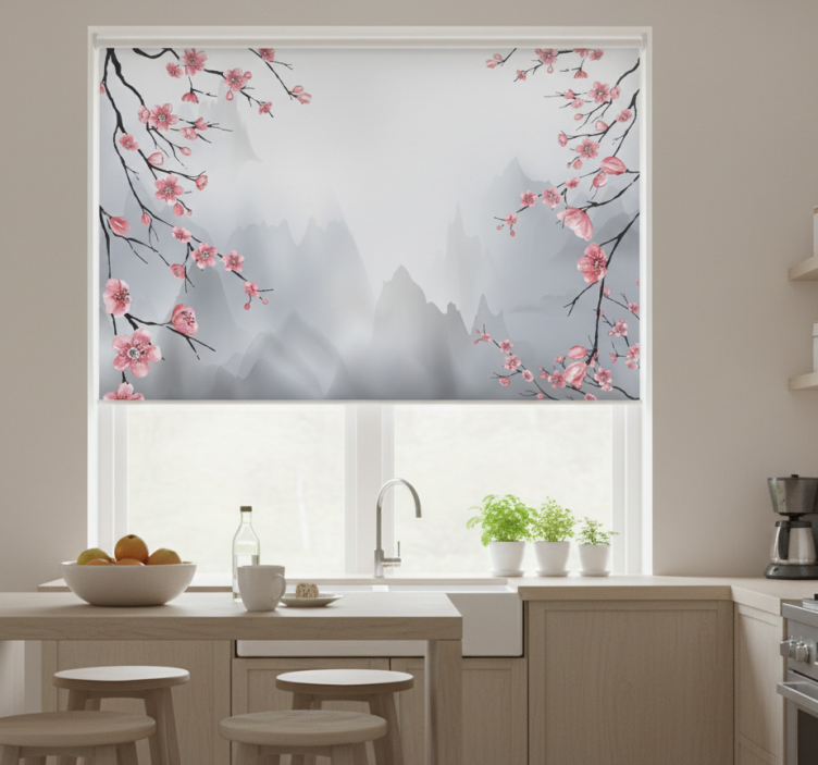 Tenda a rullo cucina rami di ciliegio giapponesi