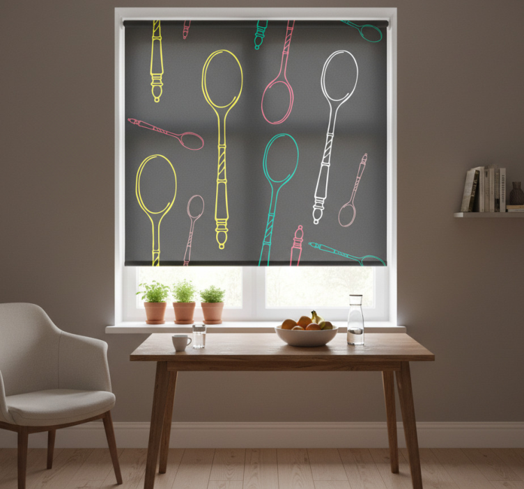 Tenda a rullo cucina schizzo di utensili neon