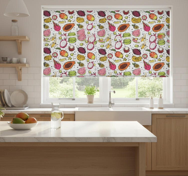 La tenda a rullo cucina tenda a rullo cucina schizzo frutti esotici colorati è perfetta per chi desidera abbellire il proprio ambiente con un elemento di design unico! Il suo motivo vivace non solo ravviva la stanza, ma crea anche un'atmosfera accogliente e vivace, trasformando la tua cucina in un luogo dove il comfort e l'estetica si incontrano. Inoltre, questa tenda offre privacy e regola la temperatura dell'ambiente, rendendola non solo bella, ma anche funzionale e pratica!