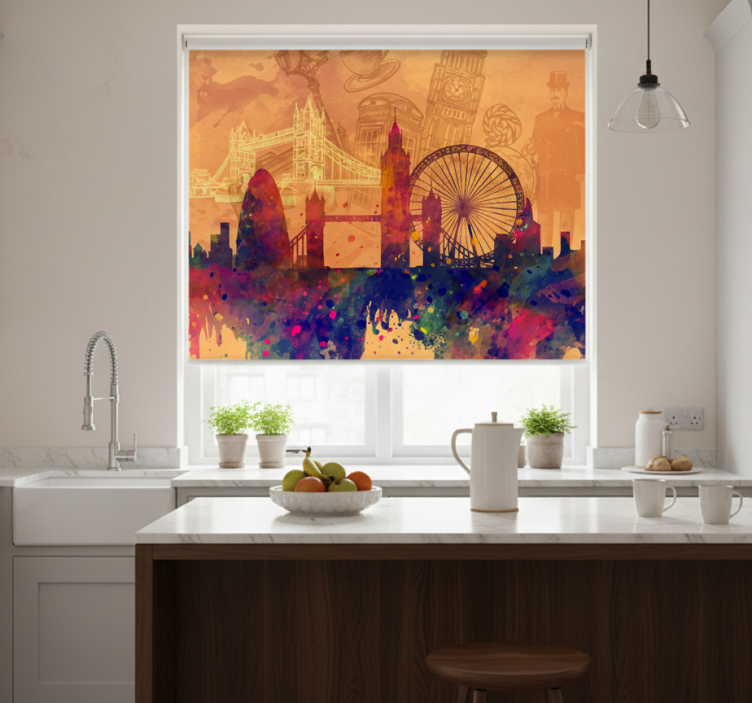 La tenda a rullo cucina tenda a rullo cucina silhouette di skyline storico non è solo un accessorio pratico, ma un vero e proprio pezzo d'arte che trasforma l'atmosfera della tua cucina. Grazie al suo design unico, offre un tocco di classe e personalità, migliorando l'arredamento della stanza e rendendo l'ambiente più accogliente. Non solo abbellisce, ma protegge anche dalla luce solare diretta, garantendo privacy e creando un'atmosfera intima e confortevole.