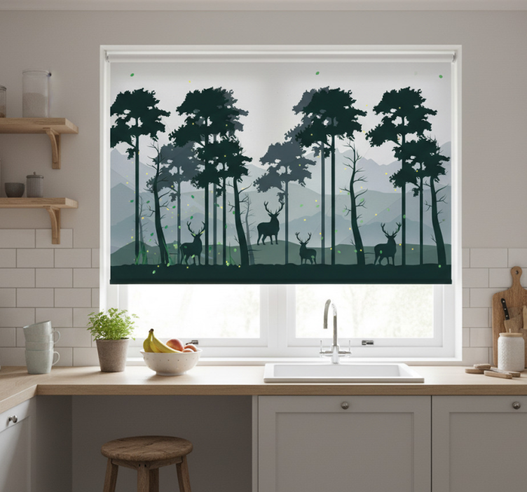 Tenda a rullo cucina silhouette foresta scandi