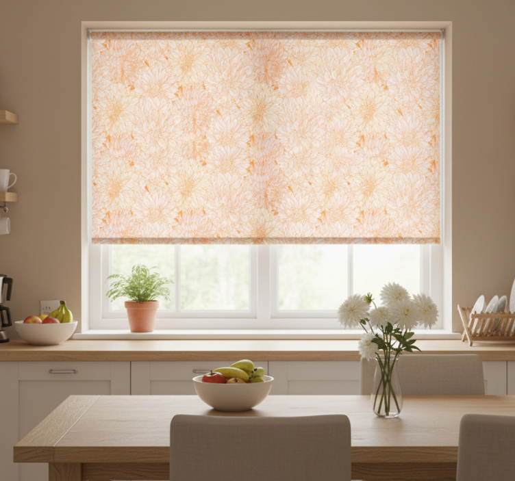 Tenda a rullo cucina texture di molte dalie bianche