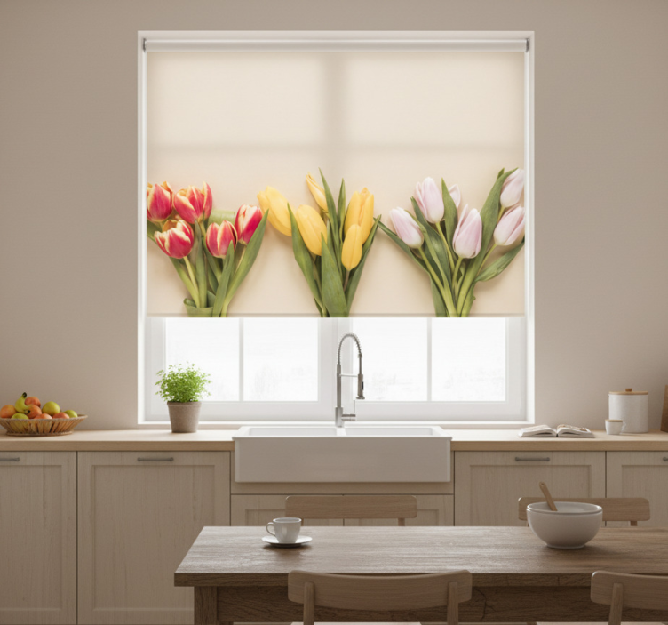 Tenda a rullo cucina tre colori diversi di fiori