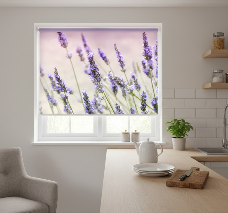 Tenda a rullo cucina un mazzo di fiori viola