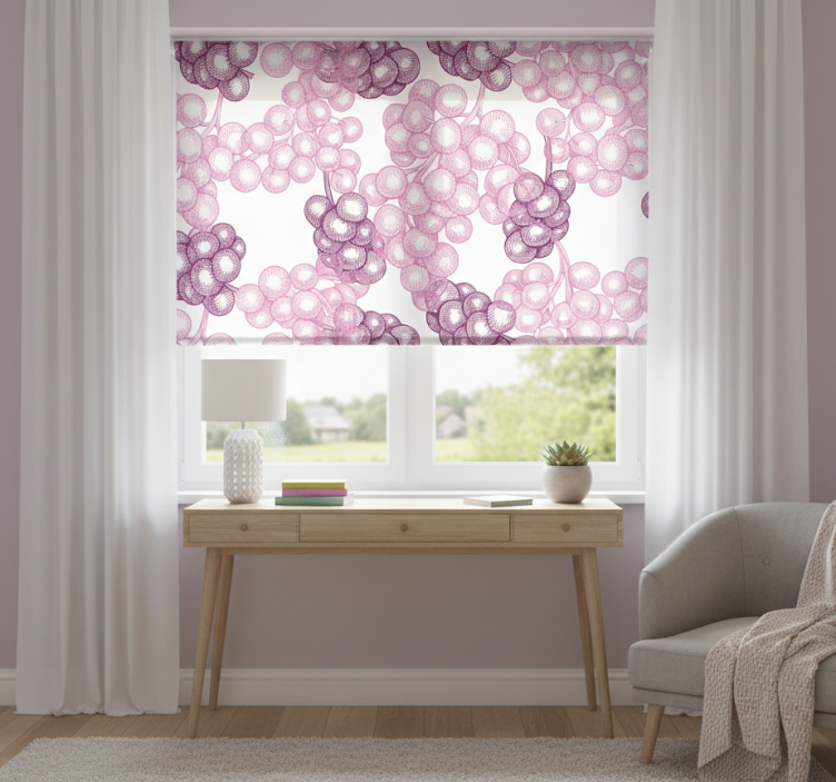 Tenda a rullo cucina uva rosa e viola disegnata a mano