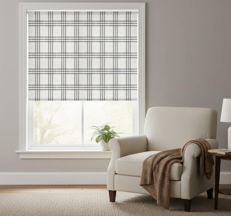 Tenda a rullo grigia motivo intrecciato