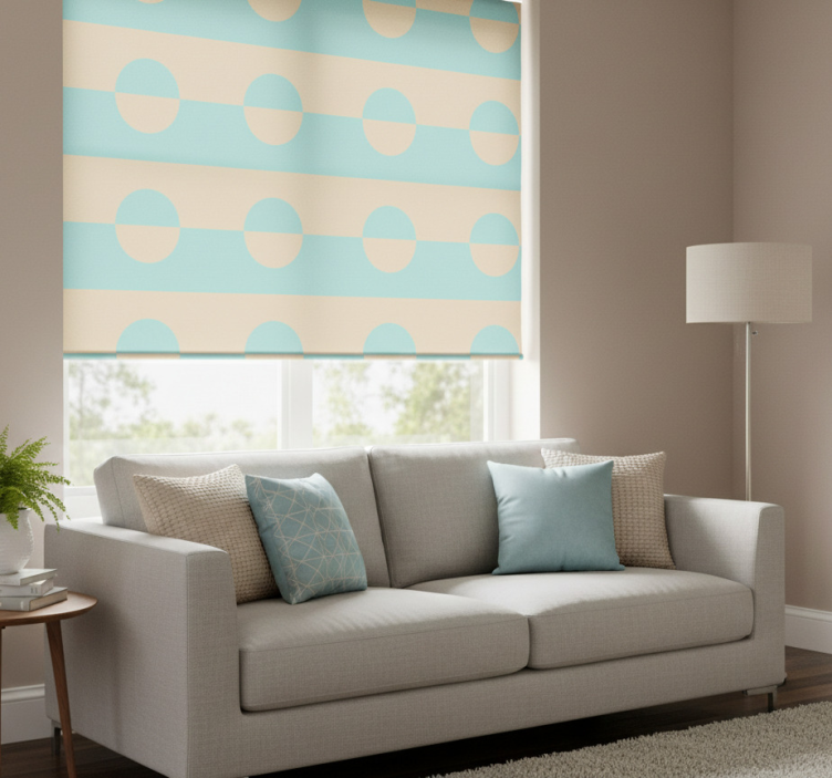 Tenda a rullo moderna a pois blu chiaro e beige con quadrati