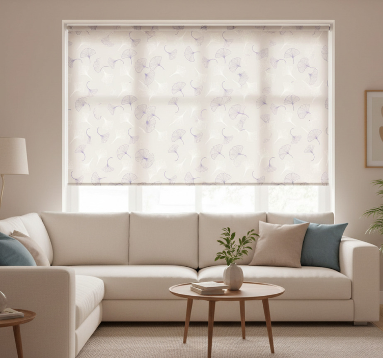 Tenda a rullo moderna crema foglie di ginkgo