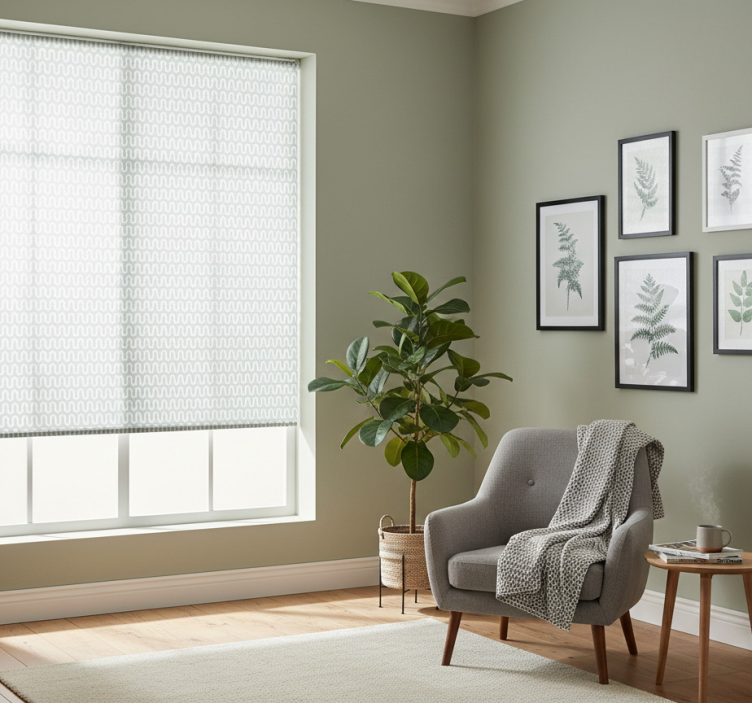 Tenda a rullo moderna motivo geometrico verde menta