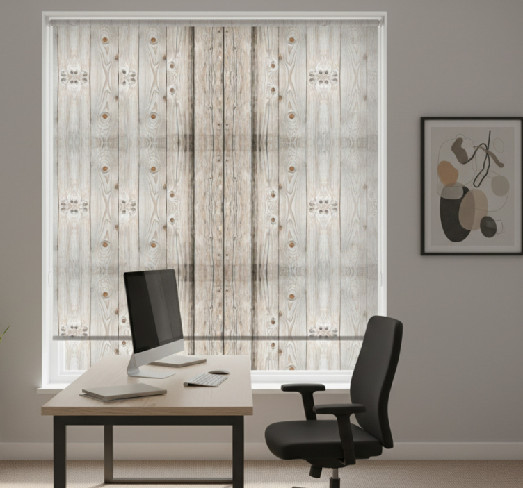 Tenda a rullo per ufficio effetto legno pino bianco