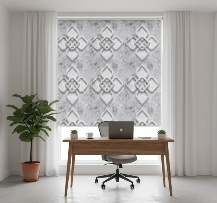 La tenda a rullo per ufficio non è solo un elemento funzionale, ma anche un vero e proprio pezzo di design. La tenda a rullo per ufficio elementi geometrici grigi 3d arricchisce l'ambiente, creando un'atmosfera professionale e accogliente. Grazie alla sua estetica distintiva, è perfetta per chi desidera unire praticità e stile senza compromessi!