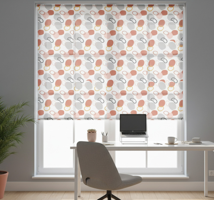 La tenda a rullo per ufficio pois geometrici astratti colorati è un must-have per chi desidera dare un tocco di originalità all'arredamento. Questa tenda non solo è un elemento decorativo, ma svolge anche una funzione pratica, proteggendo gli interni dalla luce solare diretta e fornendo privacy quando è abbassata. Grazie al suo design contemporaneo e accattivante, si integra perfettamente in qualsiasi ufficio, rendendo l'ambiente più accogliente e stimolante!