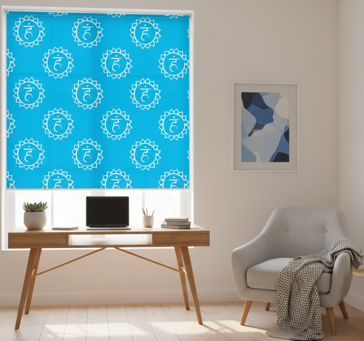 Tenda a rullo per ufficio simbolo del chakra della gola