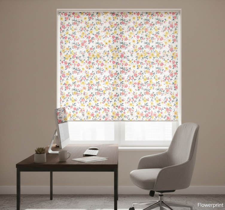 Tenda a rullo per ufficio stampa floreale 'ifuru' bianca
